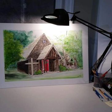 Mixed mediums with preference for pen and ink, acrylic, and watercolor.