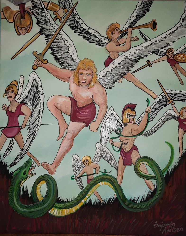 Mixed mediums with preference for pen and ink, acrylic, and watercolor.